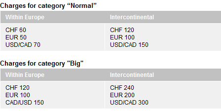 Your checked sports equipment is free of charge if within your free baggage allowance. If your free baggage allowance is exceeded by either the weight per piece or amount of pieces, following special sports charges apply: